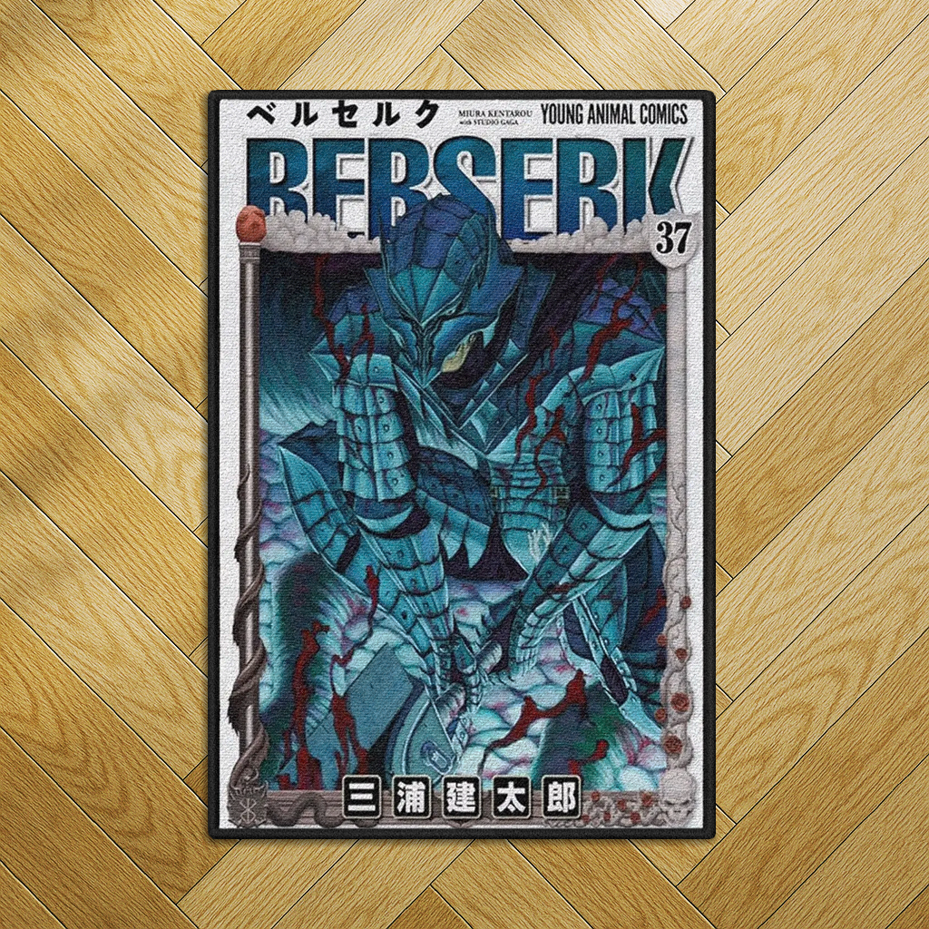 This rug features the striking cover of Berserk Vol. 37, illustrated by Kentaro Miura. Showcasing Guts in his Berserker Armor, this powerful design captures the dark, intense energy of the series. A must-have for any fan of Berserk and its legendary artwork.